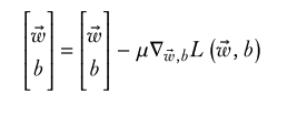- \mu \nabla_{\vec{w}, b} L(\vec{w}, b)