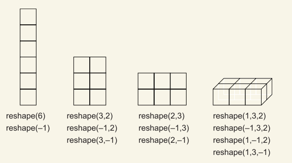What is special about reshape is that it lets us specify all but one of the dimensions, and it automatically puts the leftovers into the unspecified dimension. This leftover dimension is denoted with –1 (View Highlight)