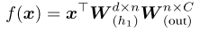 The vector x has all of our d features (in this case, d = 1), and the matrix W has a row for every feature and a column for every output. We use Wd,C to be extra explicit that it is a tensor with d rows and C columns. (View Highlight)