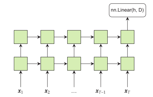 Note: pred_class is a small FC network that projects the hidden state back into the vocabulary size. What’s missing here, compared with most applications of autoregressors for text, is a sampling step based on the softmax of the resulting logits that chooses a next token (which in this example is a character, not a word).