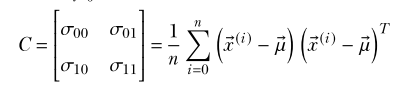 - Note: Covariance matrix. Note that the sum on the right is an outer product, not a dot product.