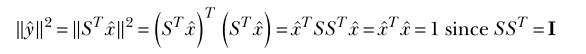 - Note: Why y-hat squared is a unit vector. I have a note in Obsidian about why you can do this trick with the product of the transpose matrix.