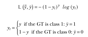 Note: The focal loss proceeds from the case where we use binary cross-entropy loss. In binary cross-entropy loss, one term always cancels out. Focal loss continues from this and adds adds a term that reflects the magnitude of the deviation of the softmax prediction for the ground truth label. Exponentiating this term by a tunable parameter gives the focal loss.